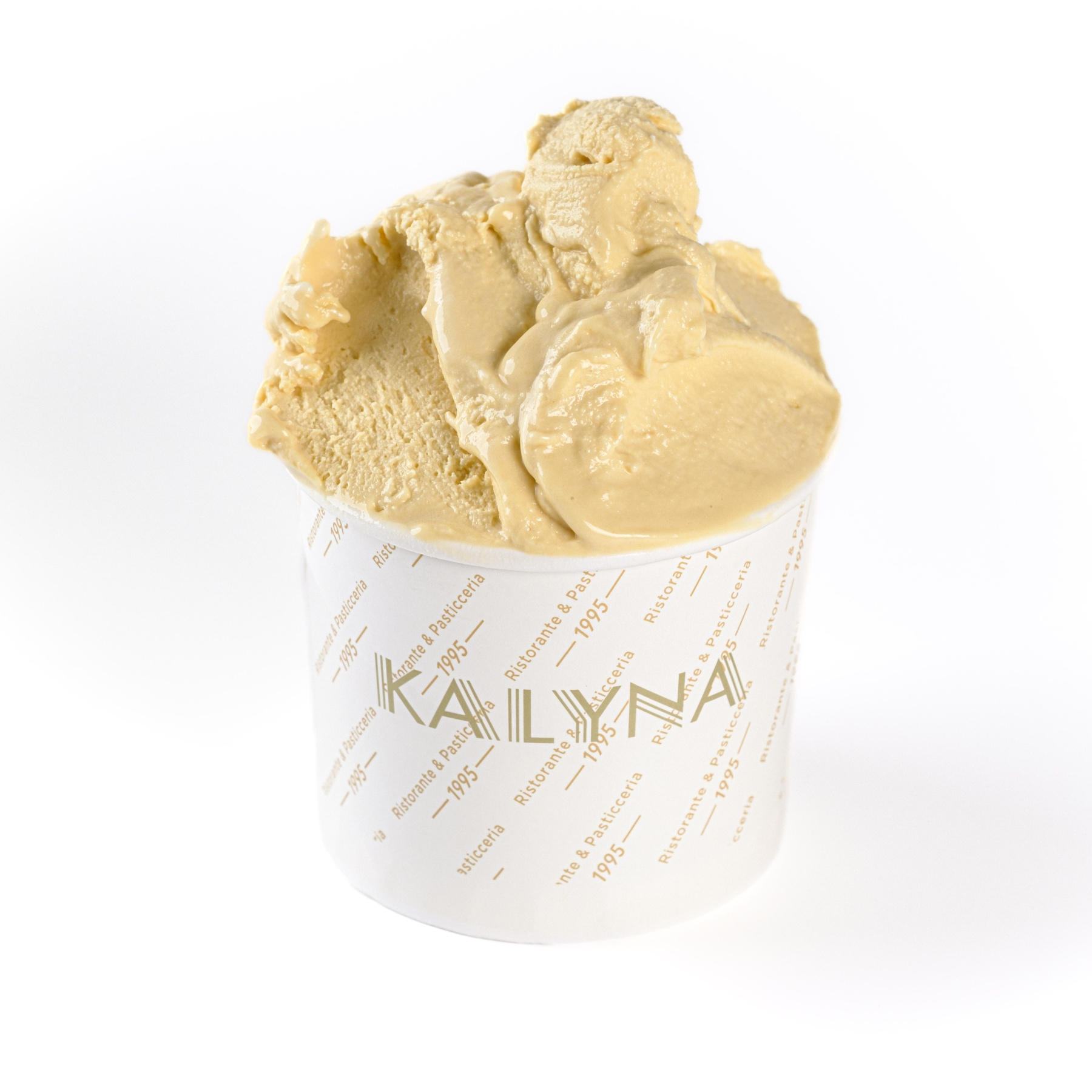 Фірмове натуральне веганське морозиво зі смаком солоної карамелі.