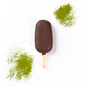Морозиво зі смаком зеленого чаю матча на паличці в чорному шоколаді