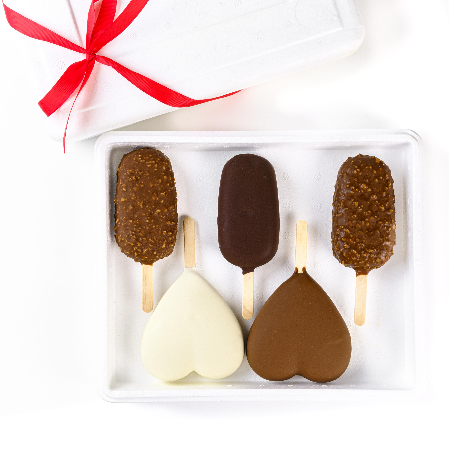 Морозиво солона карамель у формі серця в молочному шоколаді.