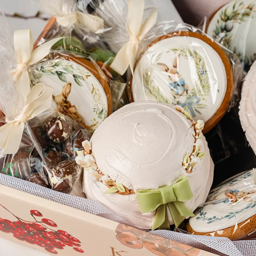 Мы собрали в этом наборе самые любимые пасхальные лакомства нашей кондитерской — ароматные куличи, медовые пряники ручной работы и праздничную домашнюю выпечку.