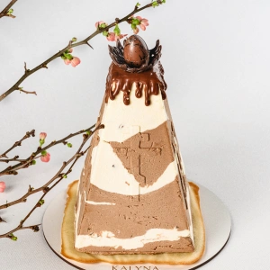 Сырные паски KALYNA готовятся по особому рецепту на основе творога собственного приготовления, что придает им мягкую и нежную консистенцию. В состав также входят изюм и бельгийский шоколад Callebaut.