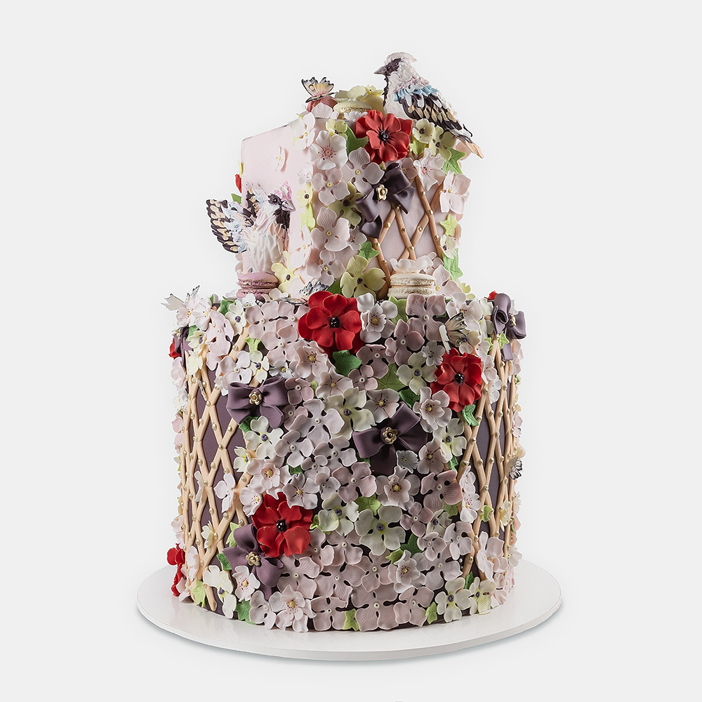 Торт 2-ярусный с цветами из сахарной пасты. Все детали на торте - ручная работа кондитера.