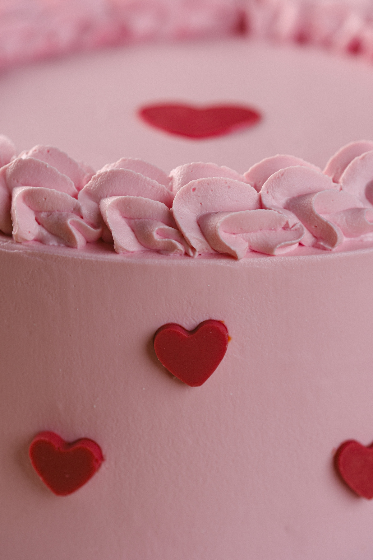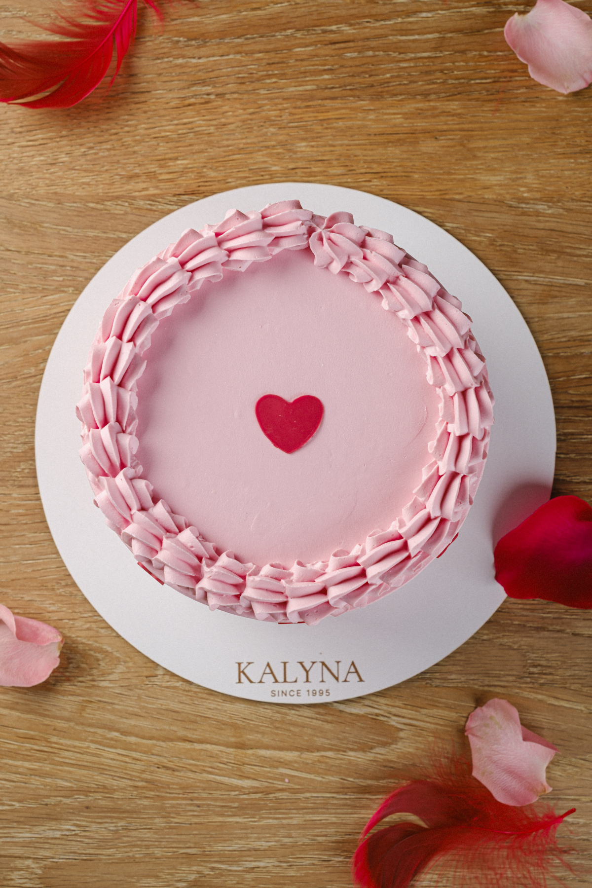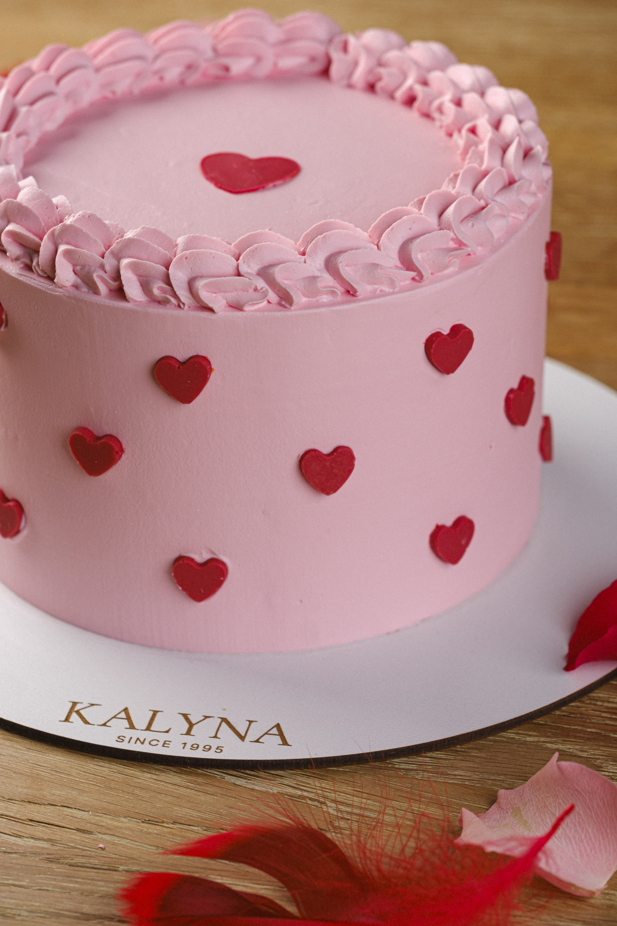 В основе - шоколадный бисквит, пропитанный ежевичным джемом с прослойками сливочного крема на основе маскарпоне, нежного ежевичного мусса и ежевичным желе. Покрыт кремом чизом, украшен шоколадными сердечками.