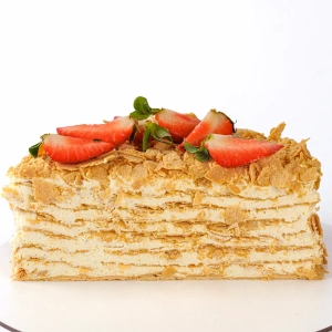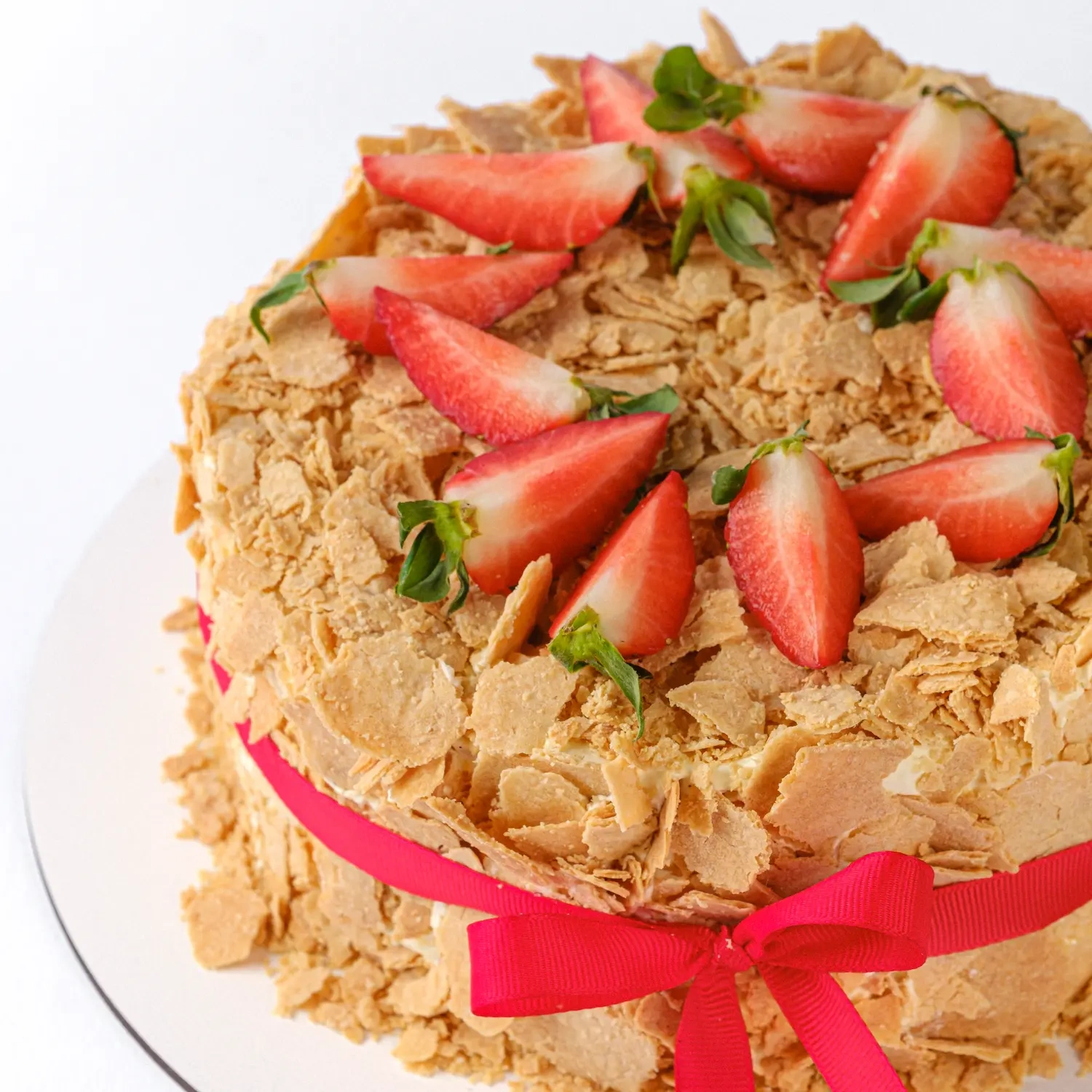 Хрустящие коржи, изготовленные на безлактозном масле и безглютеновой муке с нежным сливочным безлактозным кремом на основе натурального сахарозаменителя эритритол. Украшен ягодами.