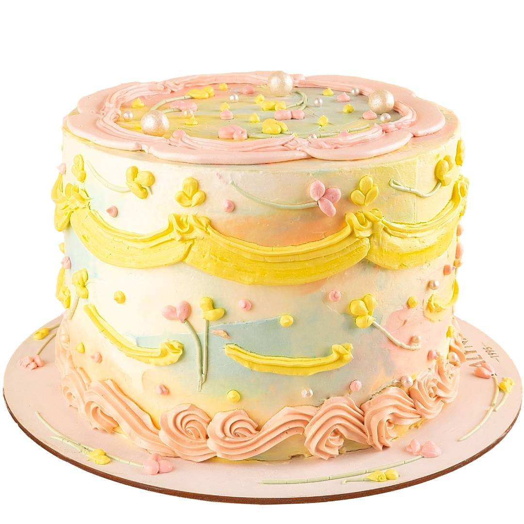 Торт "Радужный", кремовое оформление в стиле Ламбет.